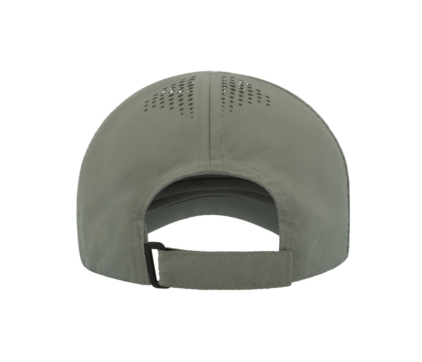 6 Panels. Klettverschluss. Per Laser angebrachte Lüftungslöcher oben an der Kappe. Vorgeformtes Schild. Vorderes Paneel destrukturiert. Schirm mit Kunststoffkernstruktur gefertigt.