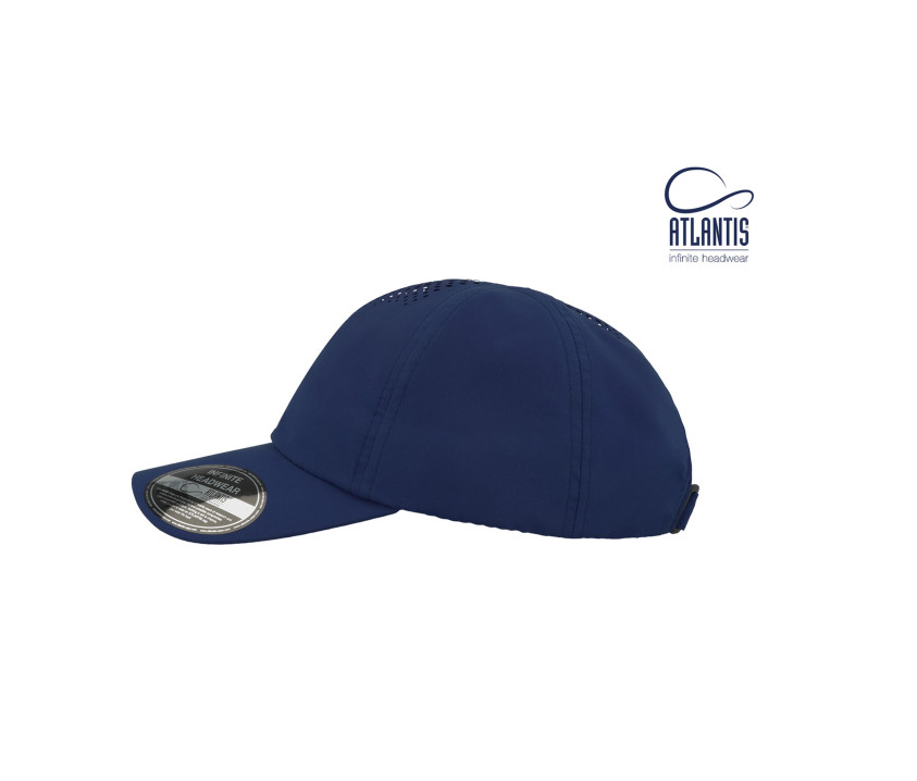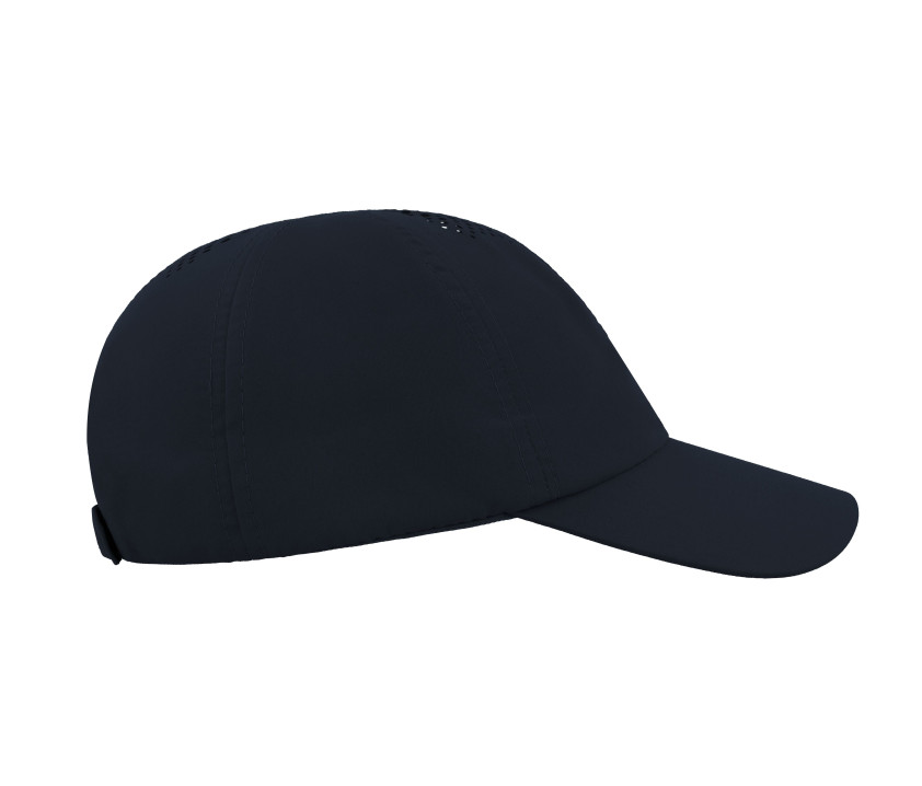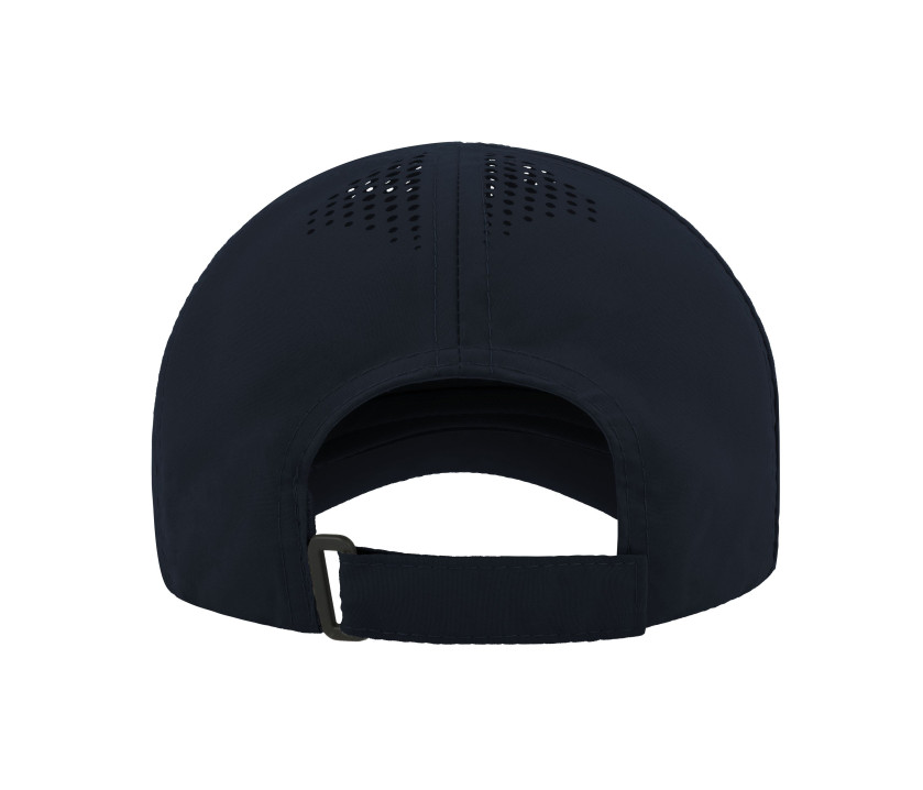 6 Panels. Klettverschluss. Per Laser angebrachte Lüftungslöcher oben an der Kappe. Vorgeformtes Schild. Vorderes Paneel destrukturiert. Schirm mit Kunststoffkernstruktur gefertigt.