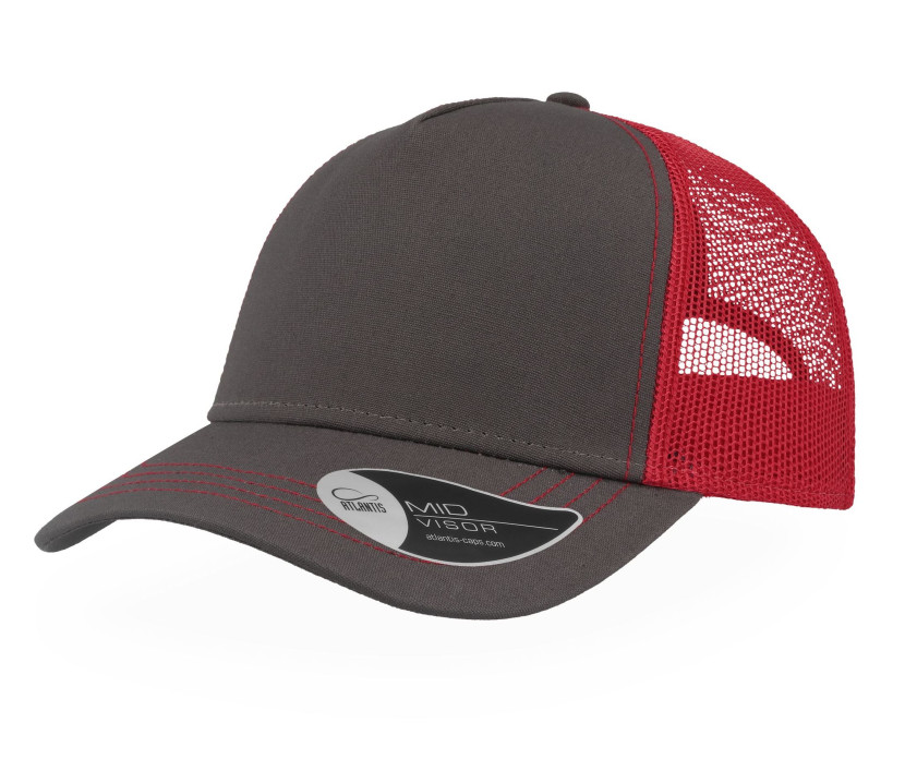 5 Panels. Vorgeformtes Schild. Rücken aus Mesh. 4 Nähte am Schild. Kopfumfang: 58cm. Schirm mit Kunststoffkernstruktur gefertigt.