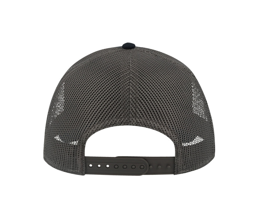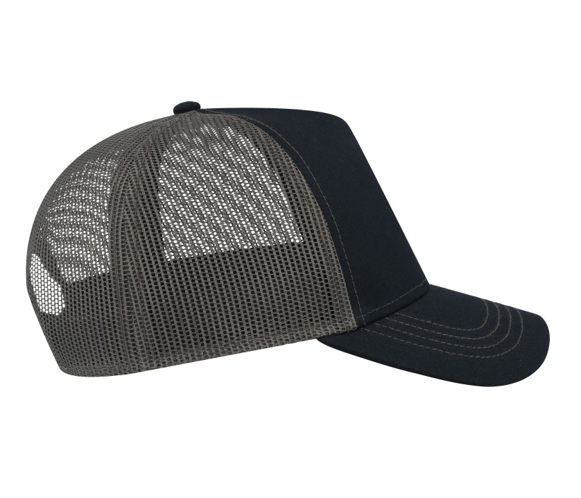 5 Panels. Vorgeformtes Schild. Rücken aus Mesh. 4 Nähte am Schild. Kopfumfang: 58cm. Schirm mit Kunststoffkernstruktur gefertigt.