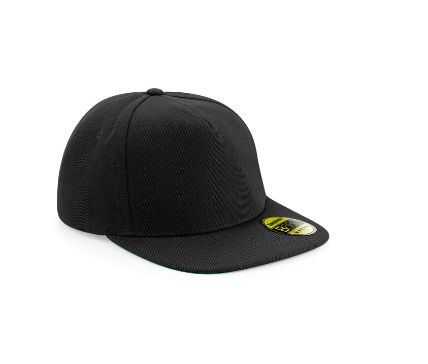 Mit Band verstellbar. Flaches Schild. Unterseite Schild in grün. Perfekt geeignet für Siebdruck und Stickerei. Kopfumfang: 59 cm. Der Schirm der Mütze besteht aus recyceltem Polyethylen, einem nachhaltigen, leichten und flexiblen Material.