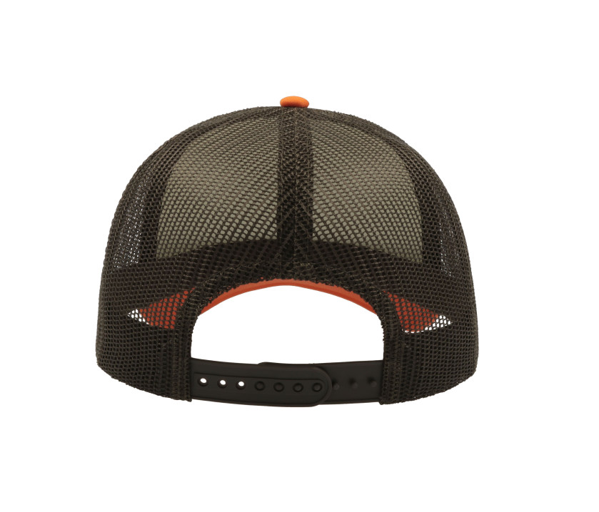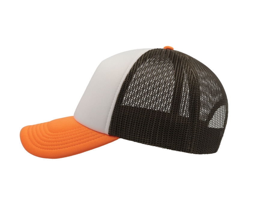 5 Panels. Verschluss mit PVC-Nieten. Netzgewebe hinten und an den Seiten. Vorgeformtes Schild. Vorderseite und Schild gepolstert. 6 Nähte am Schild. Perfekt für Siebdruck, Stickerei oder Sublimierung (Polyesterpaneel). Kopfumfang: 58cm. Schirm mit Kunststoffkernstruktur gefertigt.
