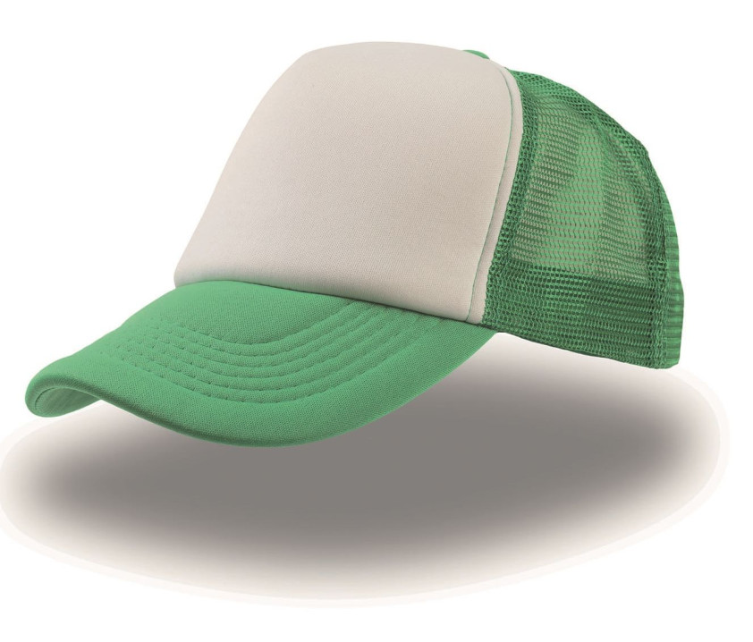 5 Panels. Verschluss mit PVC-Nieten. Netzgewebe hinten und an den Seiten. Vorgeformtes Schild. Vorderseite und Schild gepolstert. 6 Nähte am Schild. Perfekt für Siebdruck, Stickerei oder Sublimierung (Polyesterpaneel). Kopfumfang: 58cm. Schirm mit Kunststoffkernstruktur gefertigt.