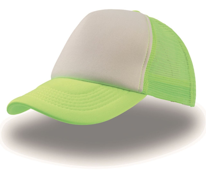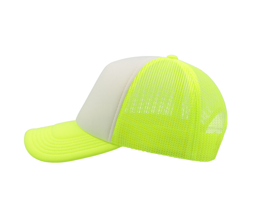 5 Panels. Verschluss mit PVC-Nieten. Netzgewebe hinten und an den Seiten. Vorgeformtes Schild. Vorderseite und Schild gepolstert. 6 Nähte am Schild. Perfekt für Siebdruck, Stickerei oder Sublimierung (Polyesterpaneel). Kopfumfang: 58cm. Schirm mit Kunststoffkernstruktur gefertigt.