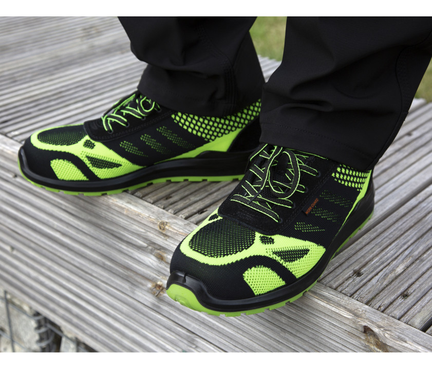 Leichte Halbschuhe. Außenstoff und Fütterung aus atmungsaktivem Maschengewebe. Gepolsterte Lasche. Energieabsorption im Absatz. SRA rutschsicher. Ersatz-Innensohle. Sicherheitskappe aus Stahl. Ölbeständig. Zertifiziert CE EN 20345:2011 SB SRA. Achtung, Größe 45 existiert nicht.