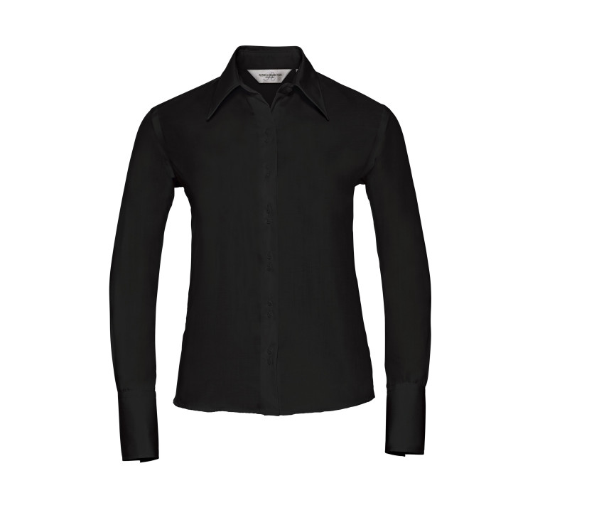Langer eleganter und bequemer Kragen. Verschluss per modischer, doppelreihiger Druckknopfleiste. Weite und lange Ärmelbündchen mit geradem Rand. Verschluss mit einem einzigen Knopf, Manschettenknöpfe möglich. Abgerundeter Saum. Ohne Tasche. Tailliert.