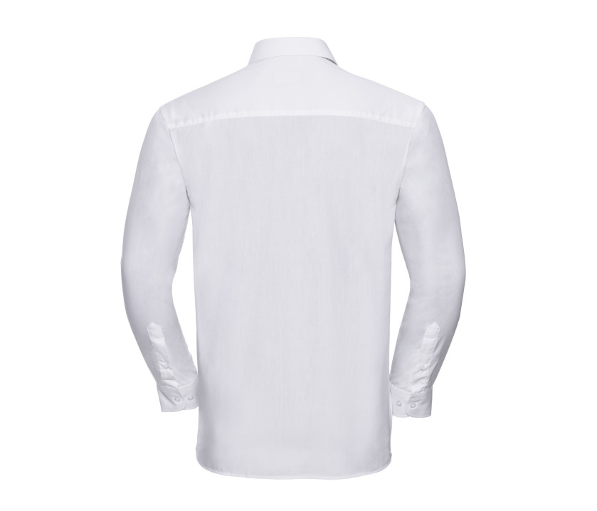 Popeline 100 % Baumwolle. Pflegeleicht, minimales Bügeln. 7 farblich passende Knöpfe. Brusttasche auf der linken Seite. 2 Bewegungsfalten im Rücken. Ärmelbündchen abgerundet, 2 Knöpfe. Mit Kragenstäbchen verstärkte Kragenspitzen, Kent-Stil.