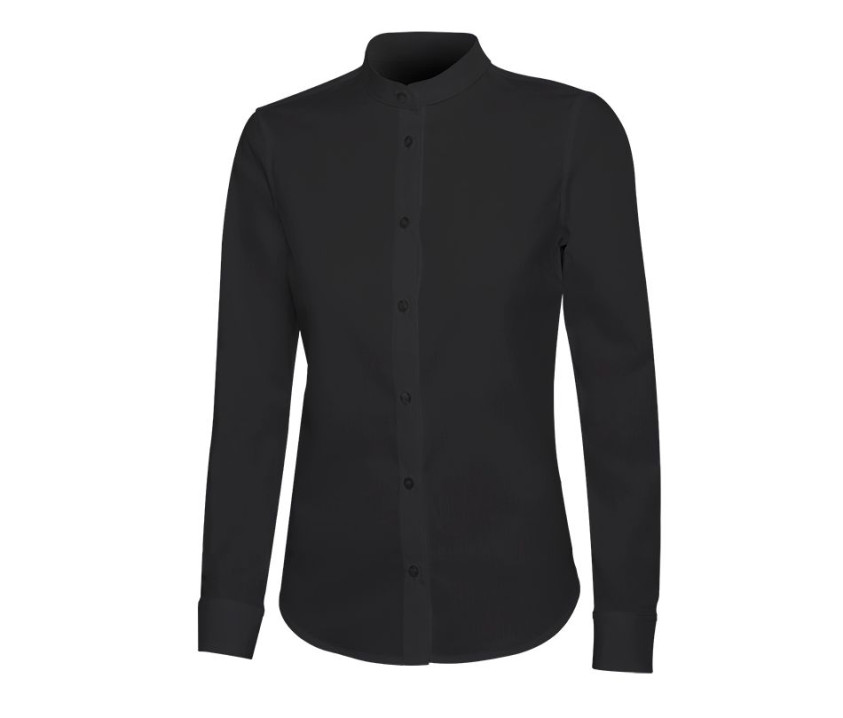Knopfverschluss mit Klappe. Mao-Kragen. Abnäher vorne und hinten für taillierte Passform. Einsatz hinten. Ärmelbündchen geknöpft. Ersatzknopf.