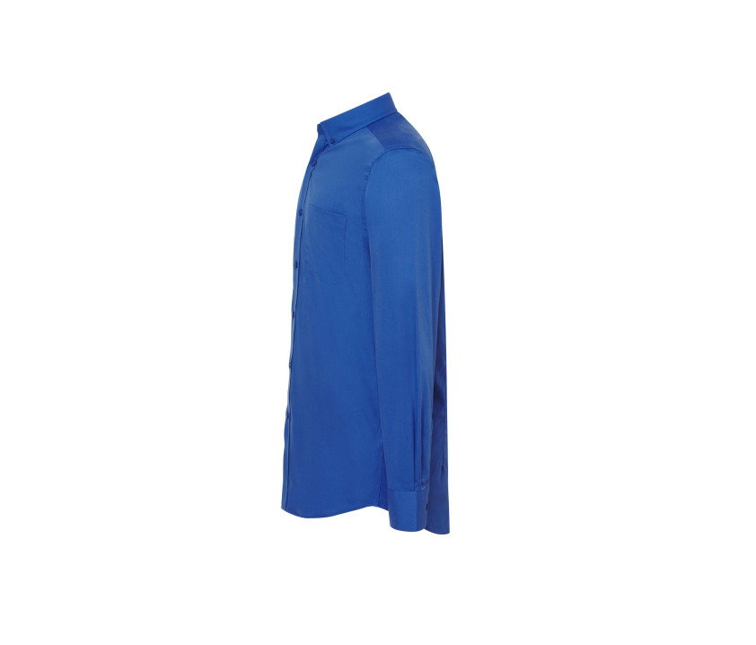 Langärmeliges Hemd. Geknöpfter Kragen. Tasche linke Seite. Farblich passende Knöpfe.