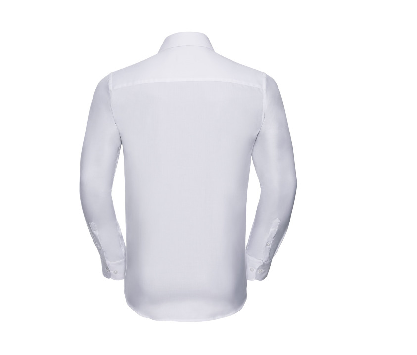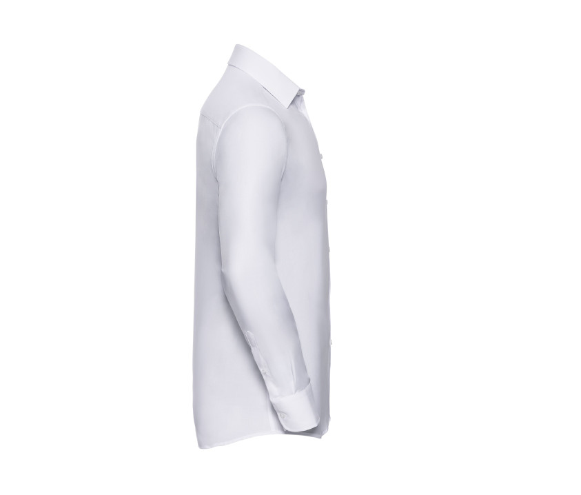 Langärmeliges Hemd. Pflegeleicht. Nicht transparent. Tailliert. Abgerundete Manschetten. Kurze Klappe, Kragen halb aufgeweitet. Ohne Tasche. Option Manschettenknöpfe.