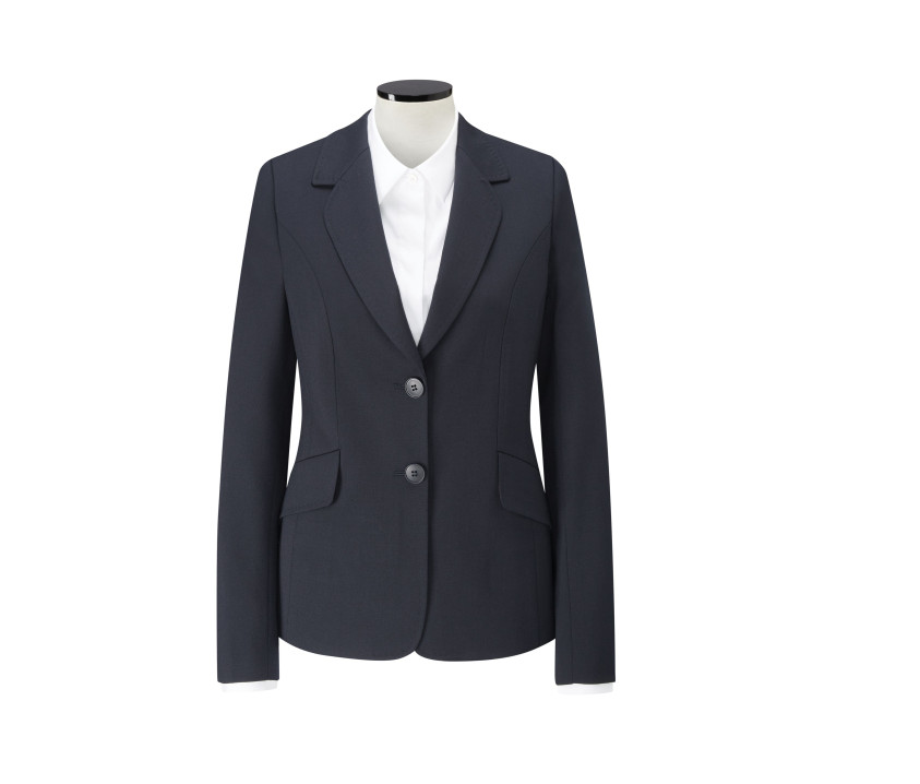 Damen-Kostümjacke mit 2 Knöpfen. 4 Nähte am Rücken. Gerade geschlossen, einreihig. Maschinenwaschbar.