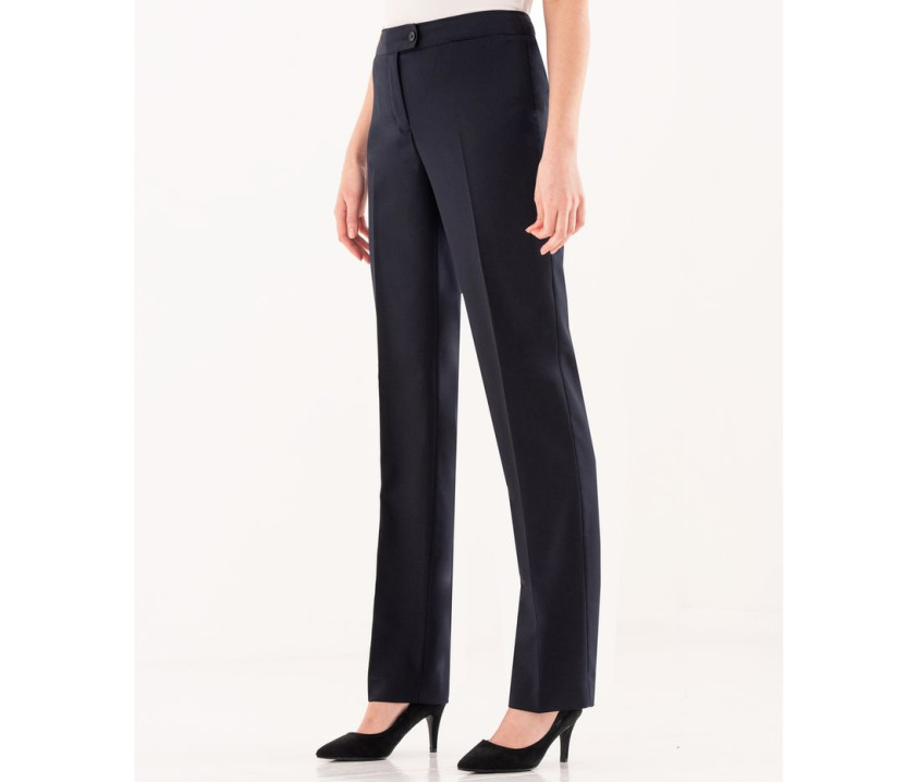 Damenhose mit Bügelfalte. Hosenschlitz mit Reißverschluss und Knopf. Kleine Tasche. Maschinenwaschbar.