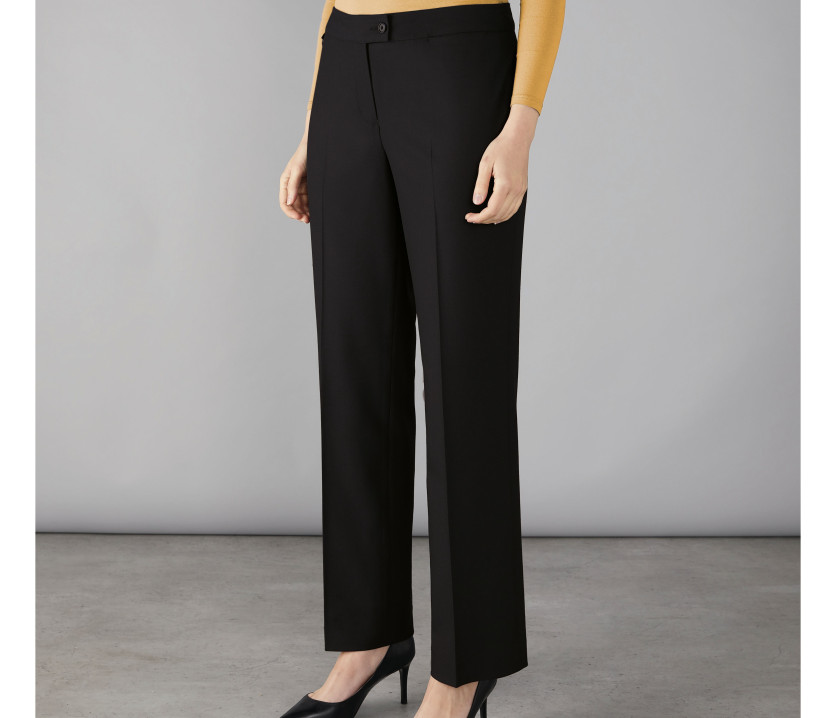 Damenhose mit Bügelfalte. Hosenschlitz mit Reißverschluss und Knopf. Kleine Tasche. Schlüsselring. Maschinenwaschbar. 2 Längen bei bestimmten Größen, U: Beinende nicht genäht - 94 cm).
