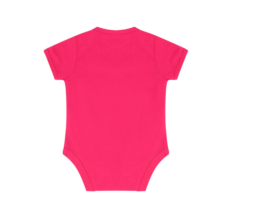 Kurze Ärmel. Ohne Etikett, nur Größenangabe. Verschluss durch Druckknöpfe im Schritt.