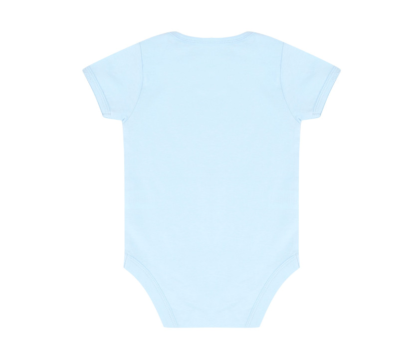 Kurze Ärmel. Ohne Etikett, nur Größenangabe. Verschluss durch Druckknöpfe im Schritt.
