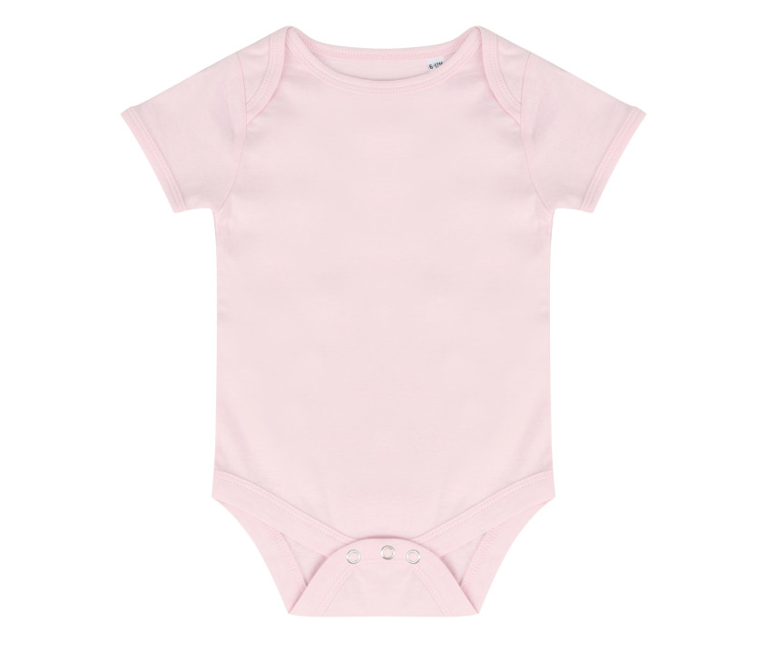 Kurze Ärmel. Ohne Etikett, nur Größenangabe. Verschluss durch Druckknöpfe im Schritt.
