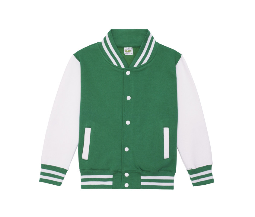 Kontrastärmel. Rippenbündchen mit Kontraststreifen an Kragen, Ärmelabschlüssen und Bund. Druckknopfverschluss. Kontrastierte Druckknöpfe. Taschen mit kontrastierten Paspeln. Innen aus gebürstetem Molton. Nackenband. Ablösbares Etikett.