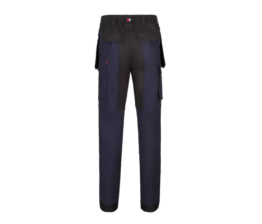 Hosenschlitz mit Knopf und Reißverschluss. Elastische Taille. Verstärkung aus Oxford-Gewebe an Knien und unten an der Hose. Verstärkung aus Gewebe hinten. Taschen für Knieschoner, mit Klettverschluss. Doppelte Sicherheitsnaht. Abnäher an den Knien. Kunststoffring an einer der Gürtelschlaufen. Gürtelschlaufen. Verschiebbare Taschen mit verschiedenen Fächern. 10 Taschen.
