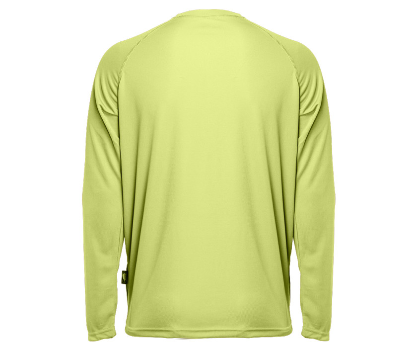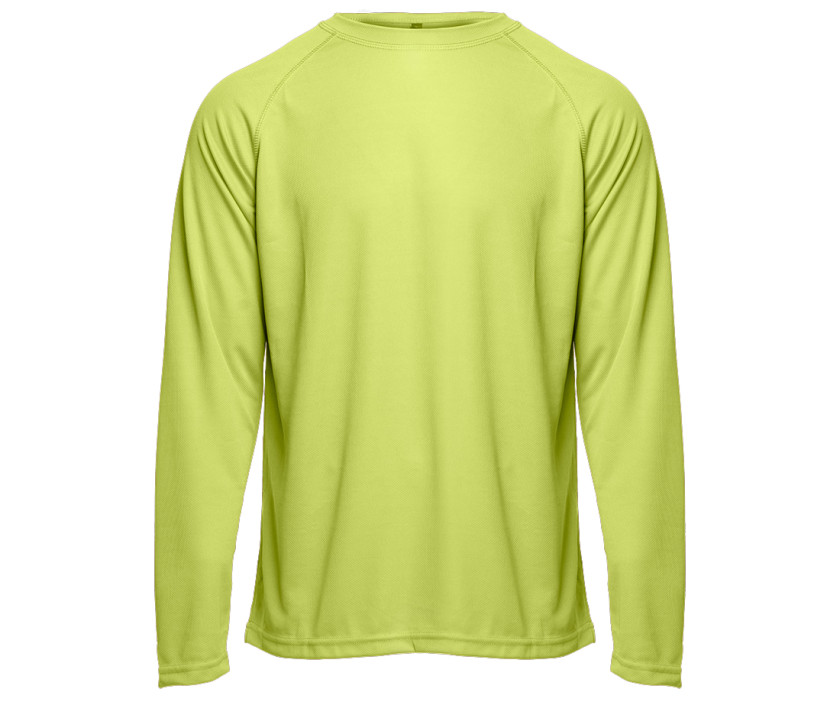 Material 100 % Polyester, gut schweißdurchlässig. Leicht und atmungsaktiv. Lange Raglanärmel.