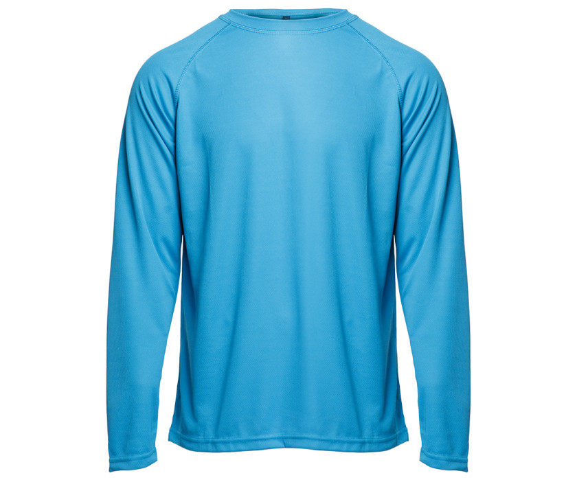 Material 100 % Polyester, gut schweißdurchlässig. Leicht und atmungsaktiv. Lange Raglanärmel.