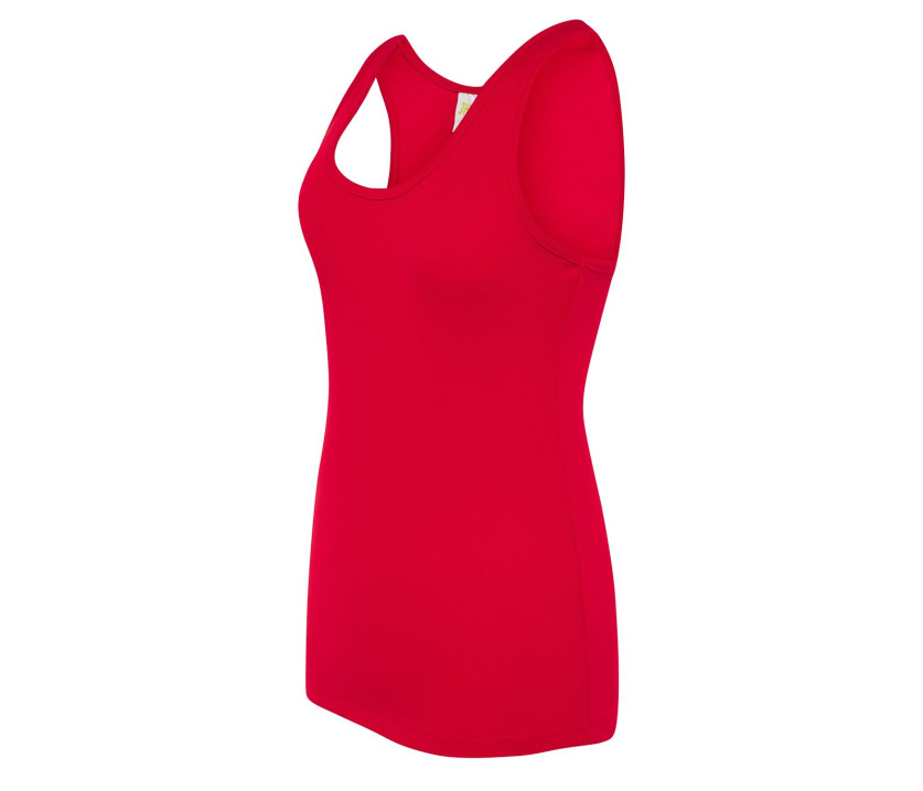 Damen-Sport-Tanktop. Ringerrücken. Ablösbares Etikett. Anliegende Passform.