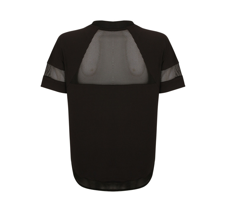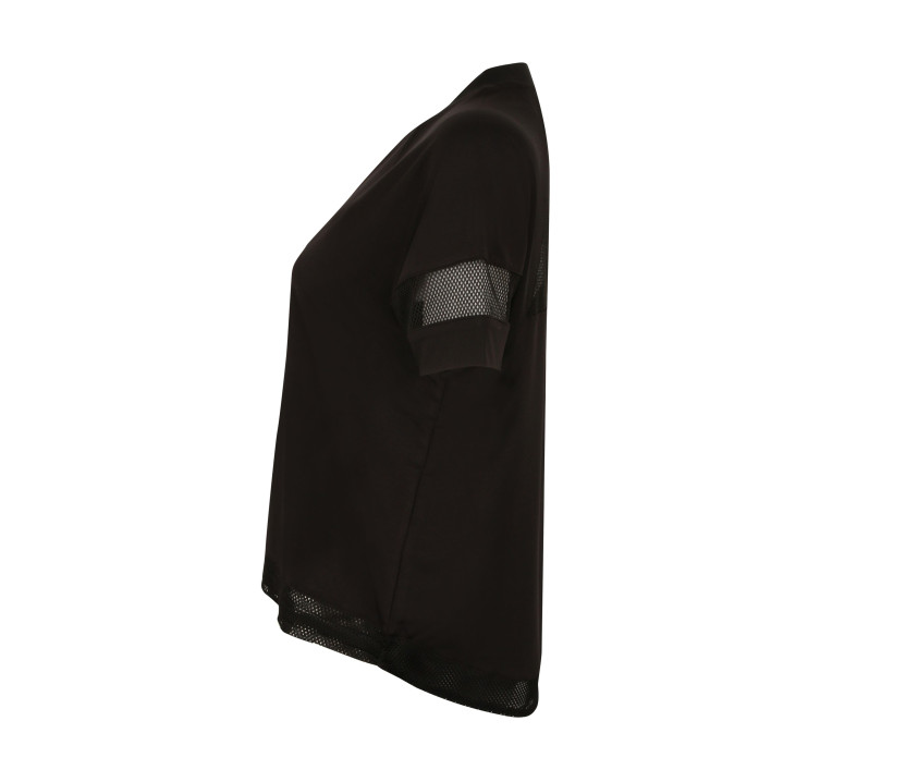 Zugband an der Taille. Netz-Einsätze Rücken und Ärmel. Rippenbündchen am Hals. Ablösbares Etikett.