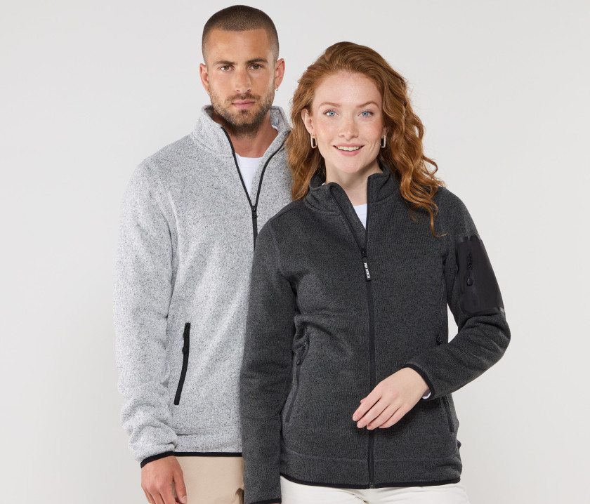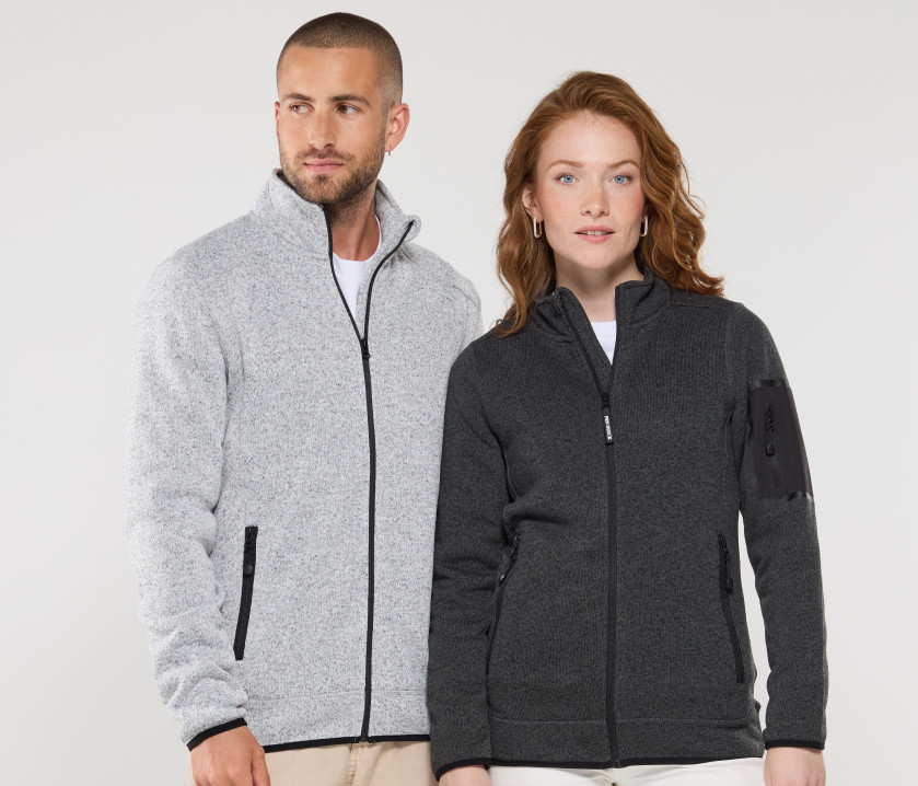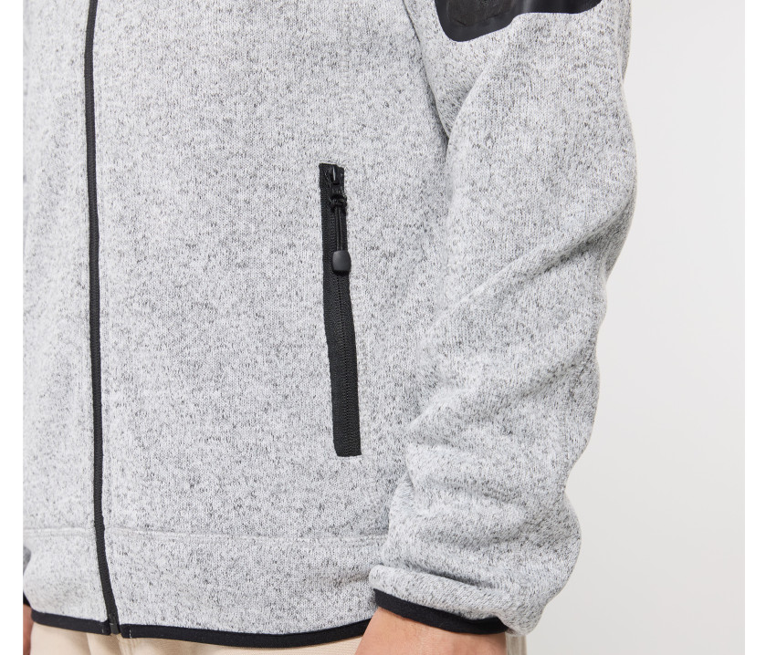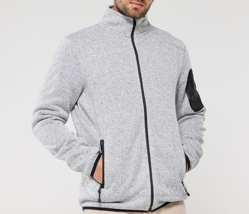 Gestrickte Fleece-Jacke für Herren 300 g/m². Reißverschlusstasche am Arm. 2 Reißverschlusstaschen.