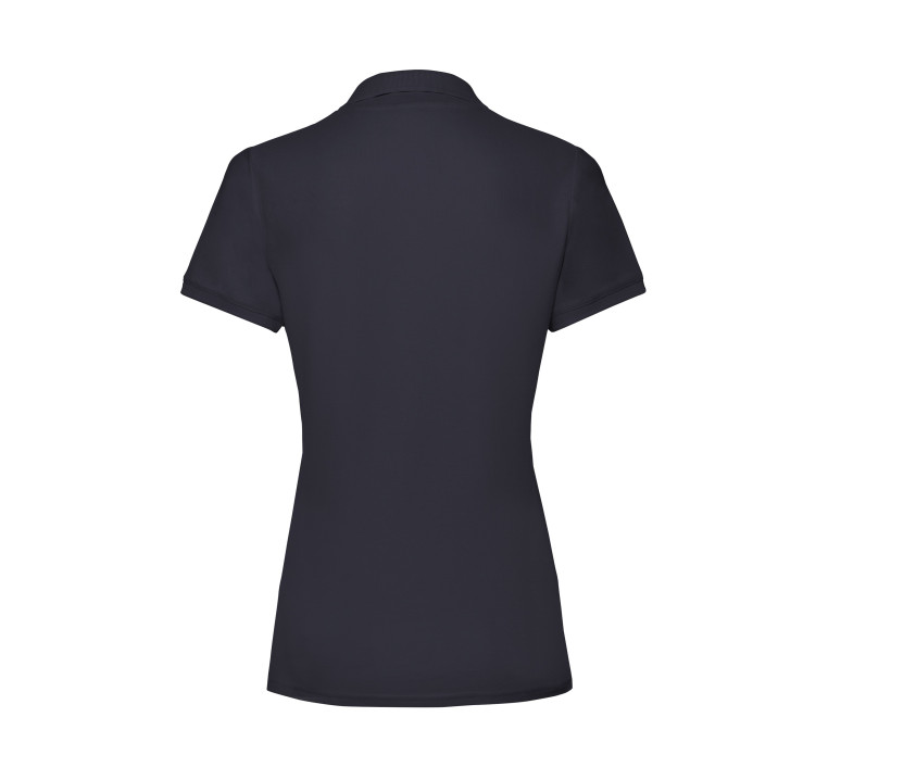 Damen-Polohemd, Baumwolle 180 - Seitliche Nähte. Tailliert. Schmale Knopfleiste mit zwei farblich passenden Knöpfen.