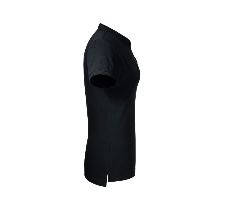 Modische und anliegende Passform. Piqué. Knopfleiste mit 3 Knöpfen und gekreuzten Nähten. Farblich passende Knöpfe. Ohne Markenetikett, nur mit Größenangabe. Passendes Fischgrät-Nackenband innen im Kragen. Seitliche Nähte. Zertifiziert nach GOTS.