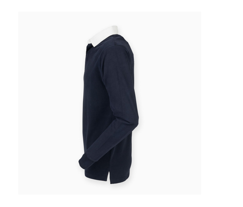 Traditionelles Rugby-Polohemd ohne Markenetikett. Abschluss Soft-Touch. Doppelte Steppnaht. Seitliche Schlitze. Farblich passende Knöpfe.