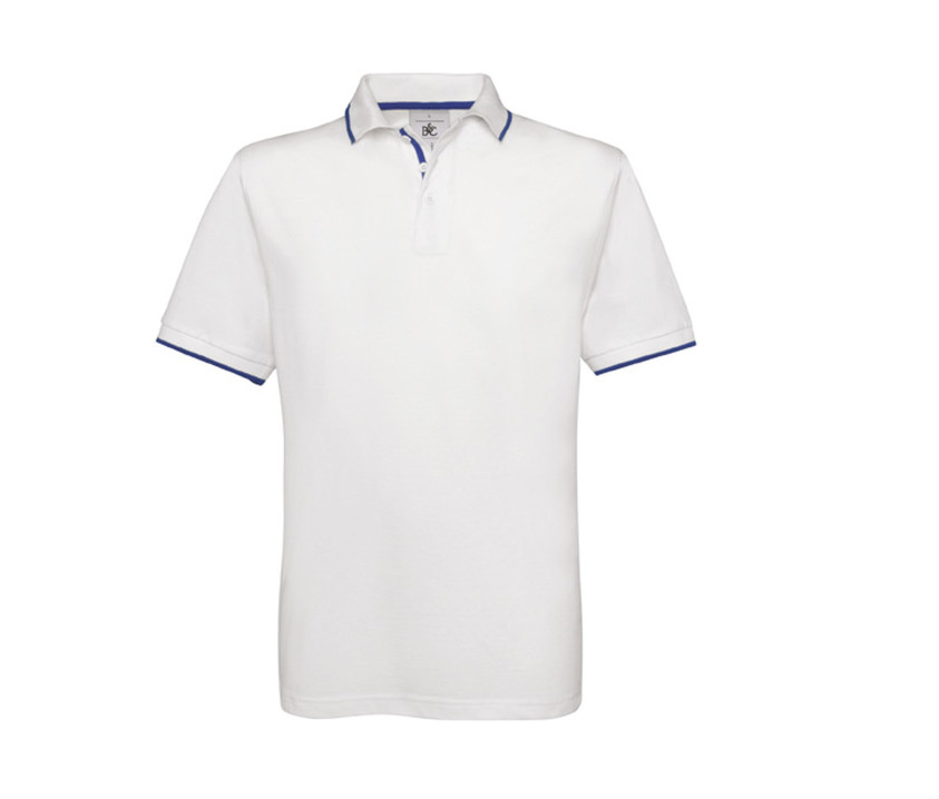 Piqué. Kragen 3 Knöpfe. Kontrastierte Paspel an Kragen, Kragenband und Ärmeln.