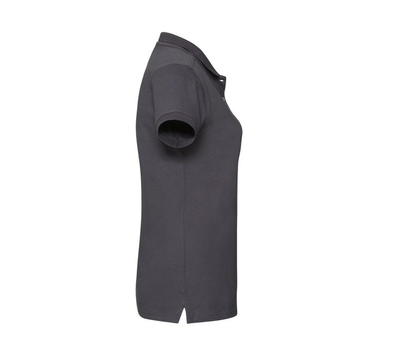 Körperbetontes Damen-Stretch-Polo - Piqué. Knopfleiste mit 4 Perlmuttknöpfen. Anliegende Passform mit seitlichen Nähten.