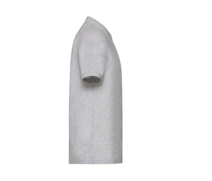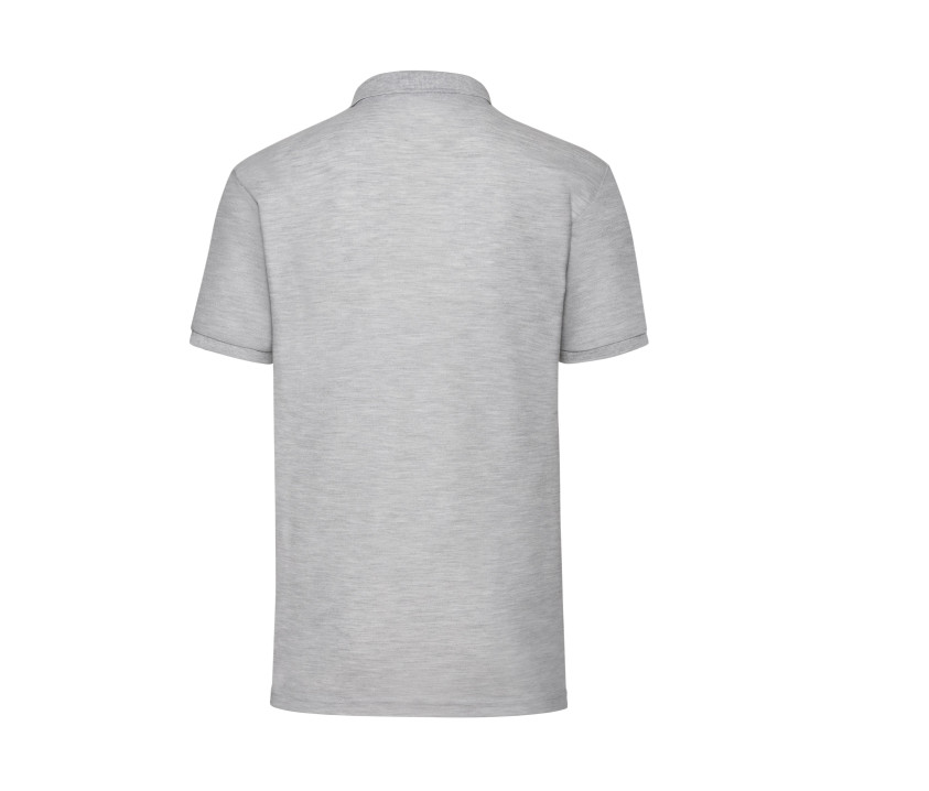 Piqué. 3 farblich passende Knöpfe. Rippenbündchen an Kragen und Ärmeln. Nackenband.