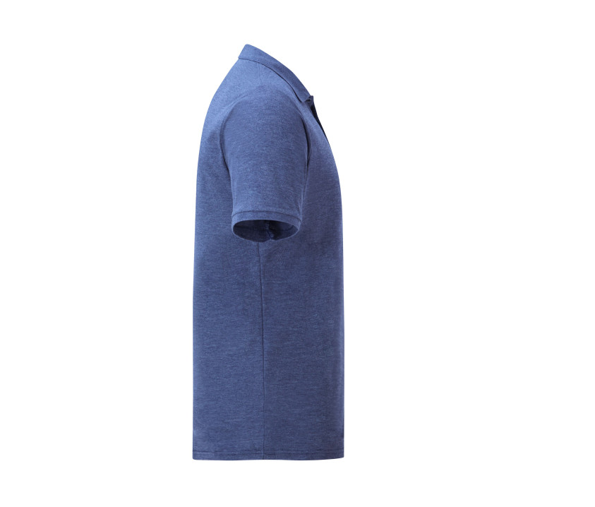 Piqué. 3 farblich passende Knöpfe. Rippenbündchen an Kragen und Ärmeln. Nackenband.