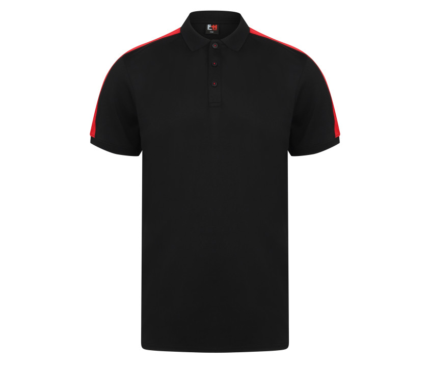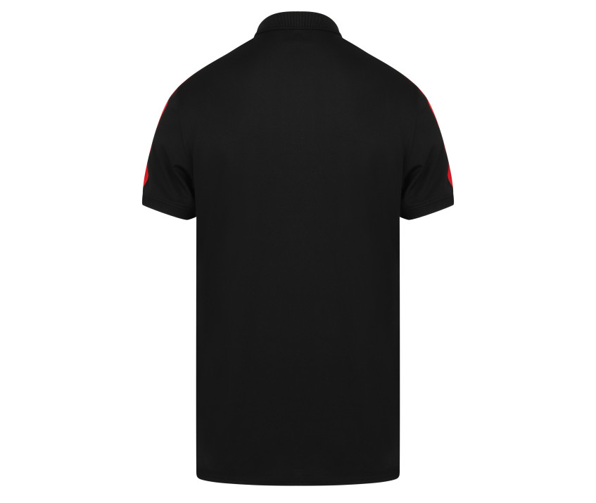 Stretch-Material mit Anti-Feuchtigkeits-Technologie. Anliegende Passform. Kontraststreifen Schultern und Ärmel. Kragen und Armausschnitte mit Rippenbündchen. Gerade Ärmel. Knopfleiste mit 3 Knöpfen, farblich abgestimmt und Kontrastnähte. Ablösbares Etikett.