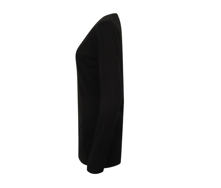 Gauge 12. Breiter Saum und Ärmel in Rippenbündchen gefaltet. 2 Taschen.