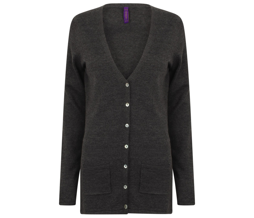 Gauge 12. Breiter Saum und Ärmel in Rippenbündchen gefaltet. 2 Taschen.