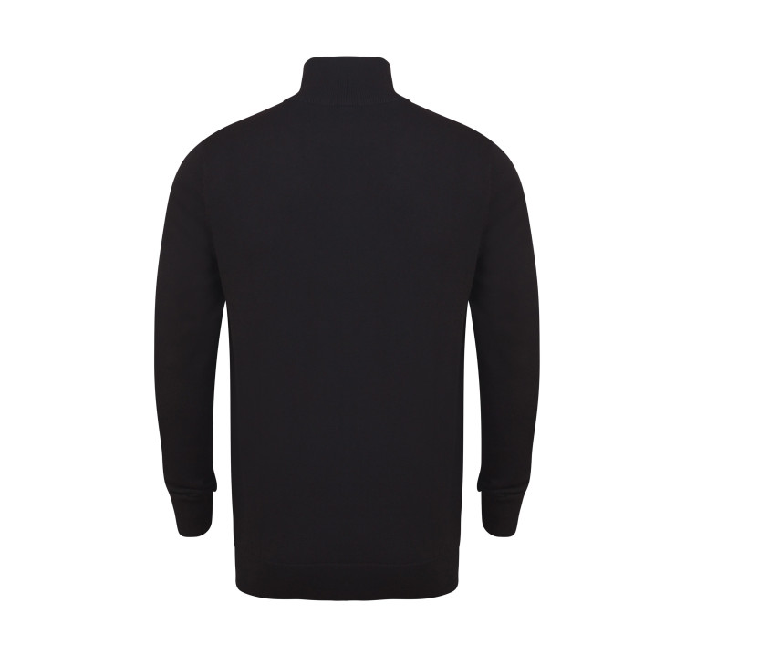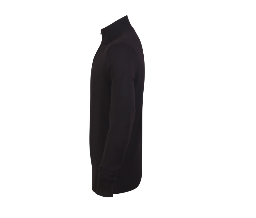 Gauge 12. 1x1-Rippenbündchen an Saum, Kragen und Ärmeln. Kragen mit Reißverschluss. Metallreißverschluss.