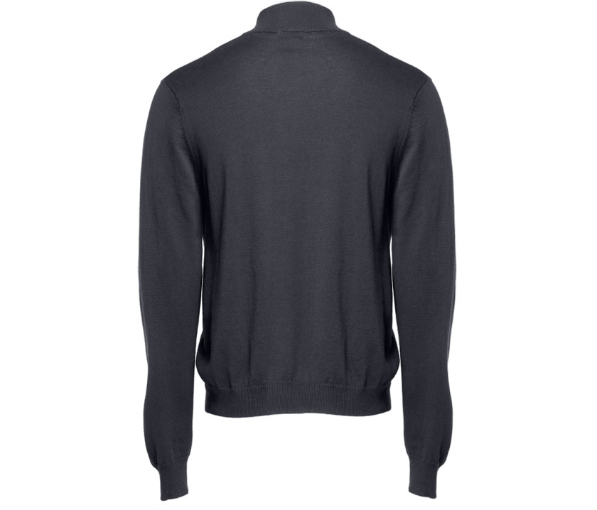Gauge 12. Halsbündchen, Ärmelbündchen und Saum in 1x1 Strick. Gerade Ärmel. Kragen mit Reißverschluss.