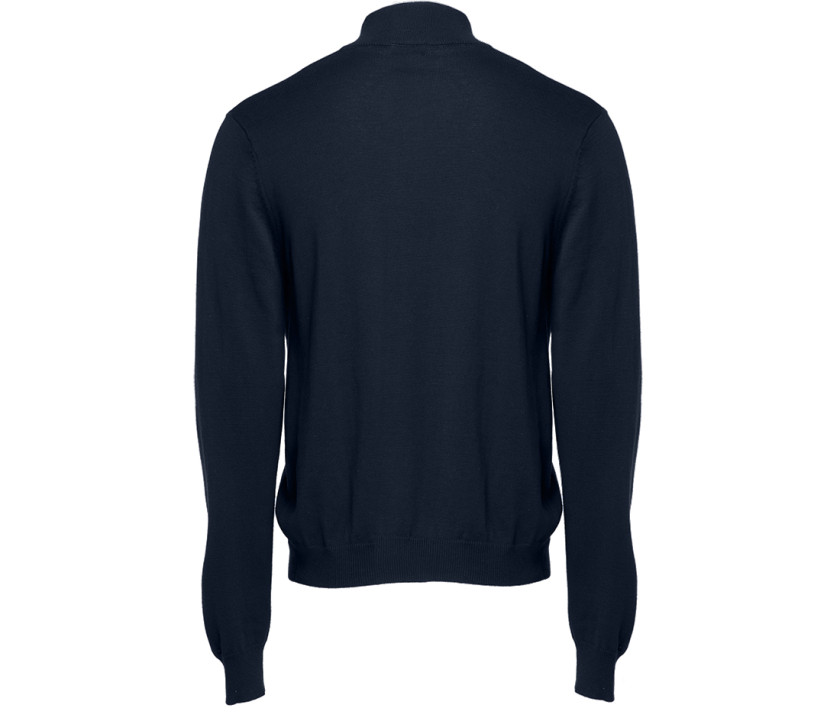 Gauge 12. Halsbündchen, Ärmelbündchen und Saum in 1x1 Strick. Gerade Ärmel. Kragen mit Reißverschluss.