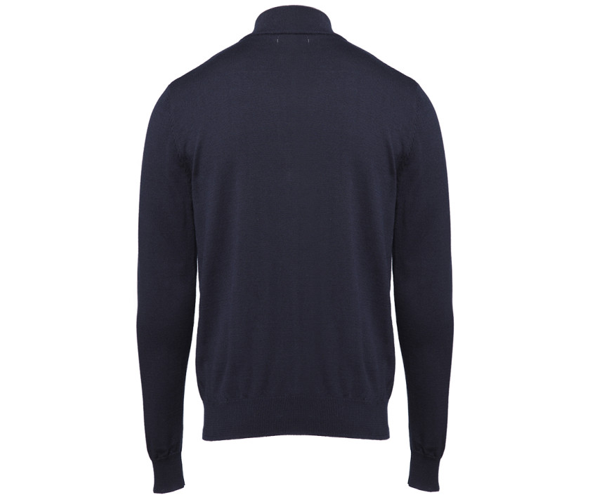 - Halsbündchen, Ärmelbündchen und Saum in Rippstrick. Gerade Ärmel. Durchgehender Reißverschluss.