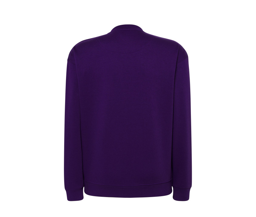 Doppelnaht Kragen, Ärmel und Bund. Rand 1x1-Strick mit Lycra an Kragen, Ärmelbündchen und Bund. Runder Halsausschnitt. Gerade Ärmel. Umstellung des Lagerbestands: Polyester/Baumwolle zu Baumwolle/recyceltem Polyester.