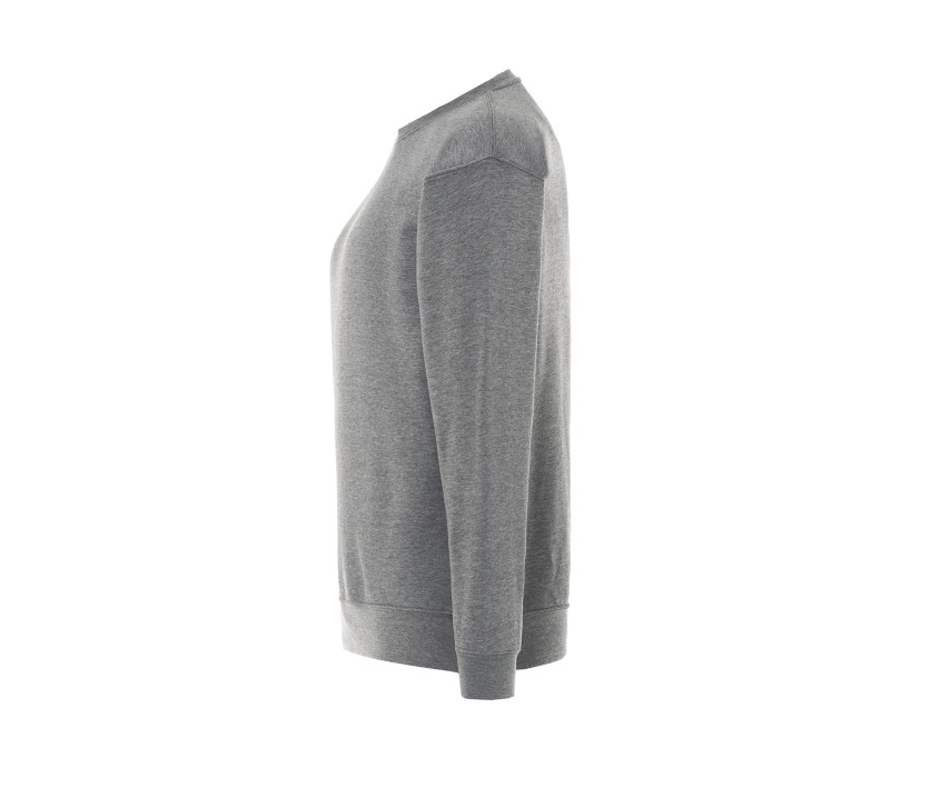 Doppelnaht Kragen, Ärmel und Bund. Rand 1x1-Strick mit Lycra an Kragen, Ärmelbündchen und Bund. Runder Halsausschnitt. Gerade Ärmel. Umstellung des Lagerbestands: Polyester/Baumwolle zu Baumwolle/recyceltem Polyester.