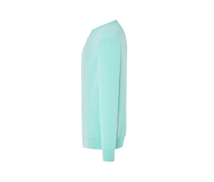 Unisex Sweatshirt - Doppelnaht Kragen, Ärmel und Bund. Rand 1x1-Strick mit Lycra an Kragen, Ärmelbündchen und Bund. Runder Halsausschnitt. Umstellung des Lagerbestands: Polyester/Baumwolle zu Baumwolle/recyceltem Polyester. Innen angeraut.
