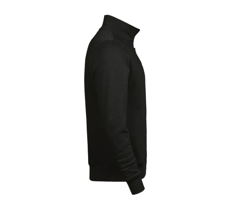Schweres Sweatshirt mit Reißverschlusskragen. Rippenbündchen mit Lycra® an Kragen, Bund und Ärmeln. 2 Seitentaschen. Innen gebürstet. Doppelt gefärbt. Waschbar bei 60 °C.