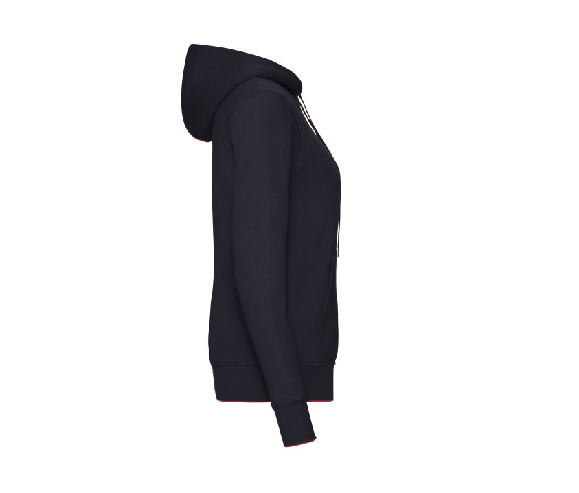 Kapuzensweatshirt für Damen - Seitliche Nähte für taillierte Passform. Gefütterte Kapuze mit flachem Zugband in passender Farbe. Innen angeraut.