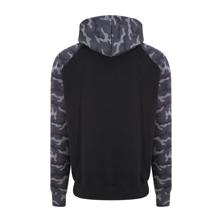 Raglanärmel. Kontrastierende Ärmel und Kapuze. Flache, kontrastierende Zugbänder. Gefütterte Kapuze. Doppelnähte. Kängurutasche. Rippenbündchen an Saum und Ärmeln. Ablösbares Etikett.