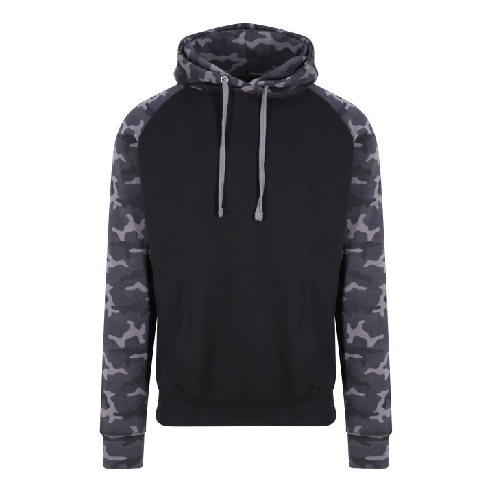 - Raglanärmel. Kontrastierende Ärmel und Kapuze. Flache, kontrastierende Zugbänder. Innen angeraut.