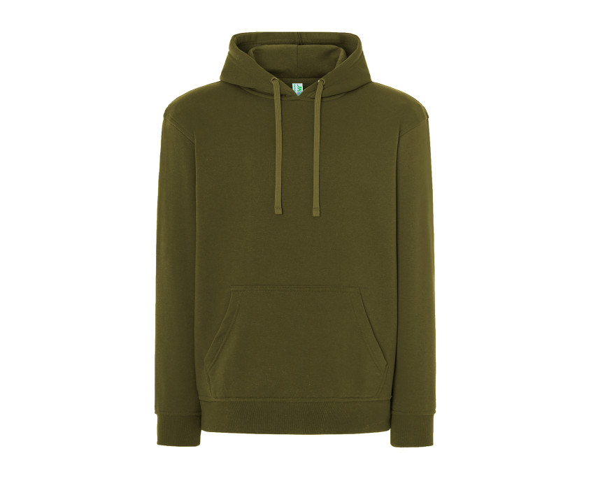 Unisex Kapuzensweatshirt. Zugband in gleicher Farbe. Kängurutasche. 1x1 Rippenbündchen aus Lycra an Ärmel und Bund. Umstellung des Lagerbestands: Polyester/Baumwolle zu Baumwolle/recyceltem Polyester.