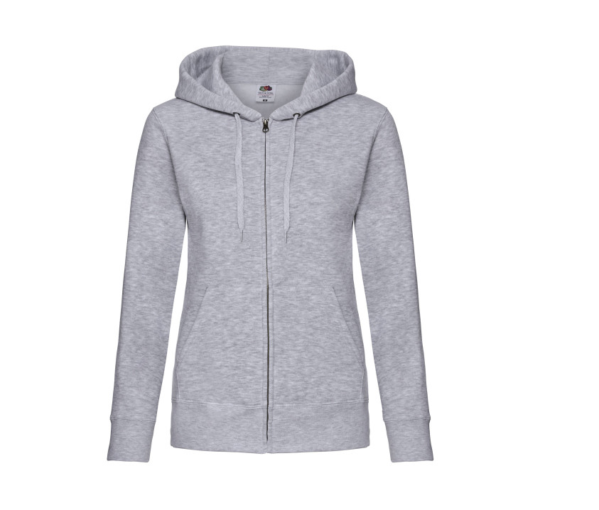 Damen-Kapuzensweatshirt mit Reißverschluss. Gefütterte Kapuze. Zugband in passender Farbe. Durchgehender Reißverschluss. Zwei Fronttaschen. Unsichtbarer Reißverschluss für gleichmäßiges Bedrucken.